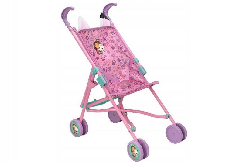 Wózek parasolka inspirowany uwielbianym przez dzieci serialem "Koci Domek Gabi" to idealny wybór dla małych miłośników zabawy w opiekę nad lalkami i pluszakami. Wózek utrzymany jest w pastelowych odcieniach różu i fioletu, ma słodkie kocie uszka, a na jego siedzisku znajduje się urocza grafika...