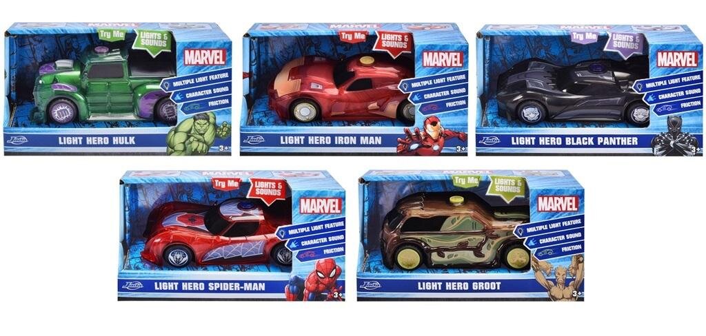 Pojazd na licencji Marvela z funkcją światła i dźwięku. Posiada napęd cierny. Skala 1:32Różne modele, produkt wysyłany losowo, cena za 1 sztukę. číst celé
