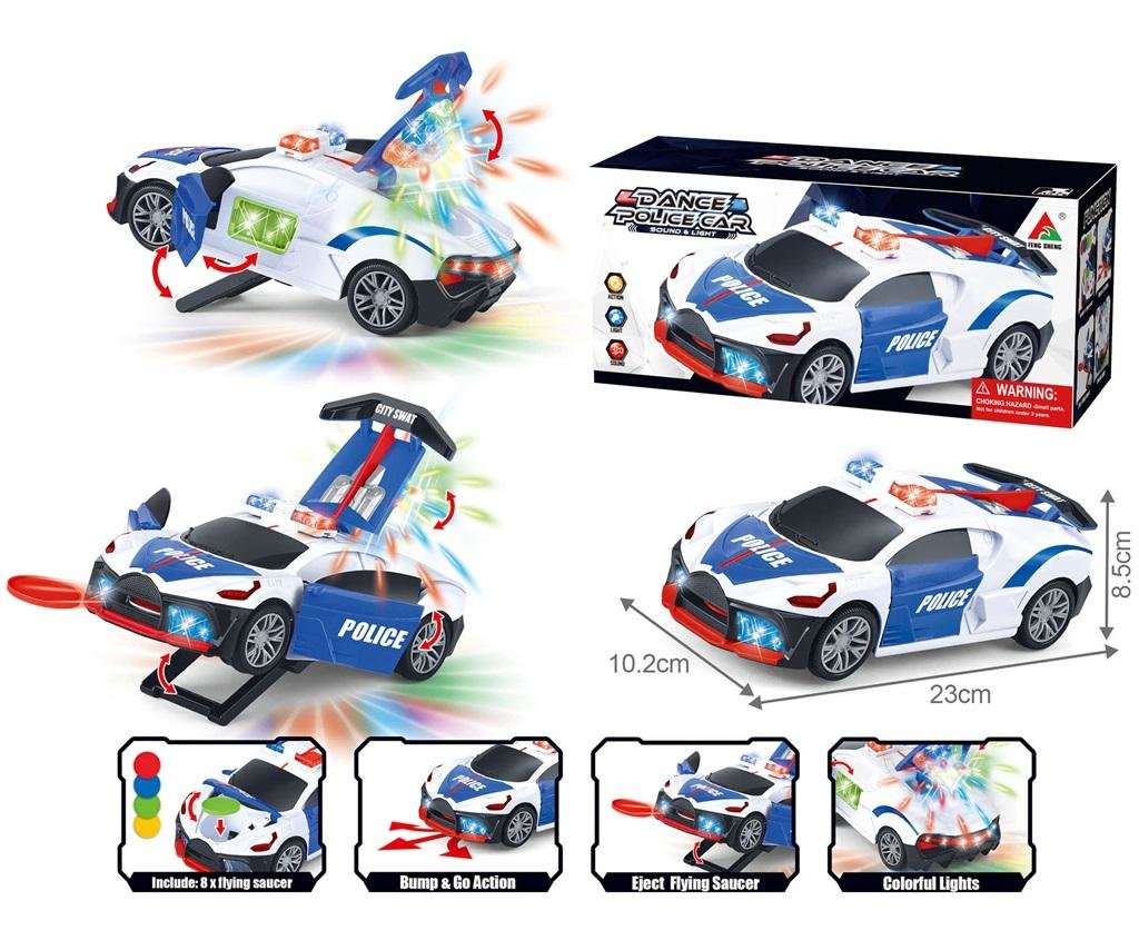 Auto policyjne na baterie. Jeździ, odbija się od przeszkód, z efektami dźwiękowymi i świetlnymi. číst celé