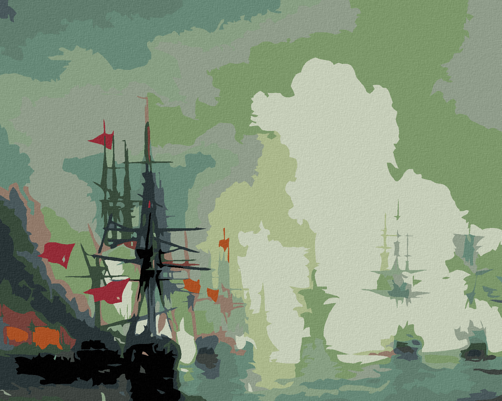 Malování podle čísel - LODĚ V MLZE - 80x100 cm, bez rámu a bez vypnutí plátna