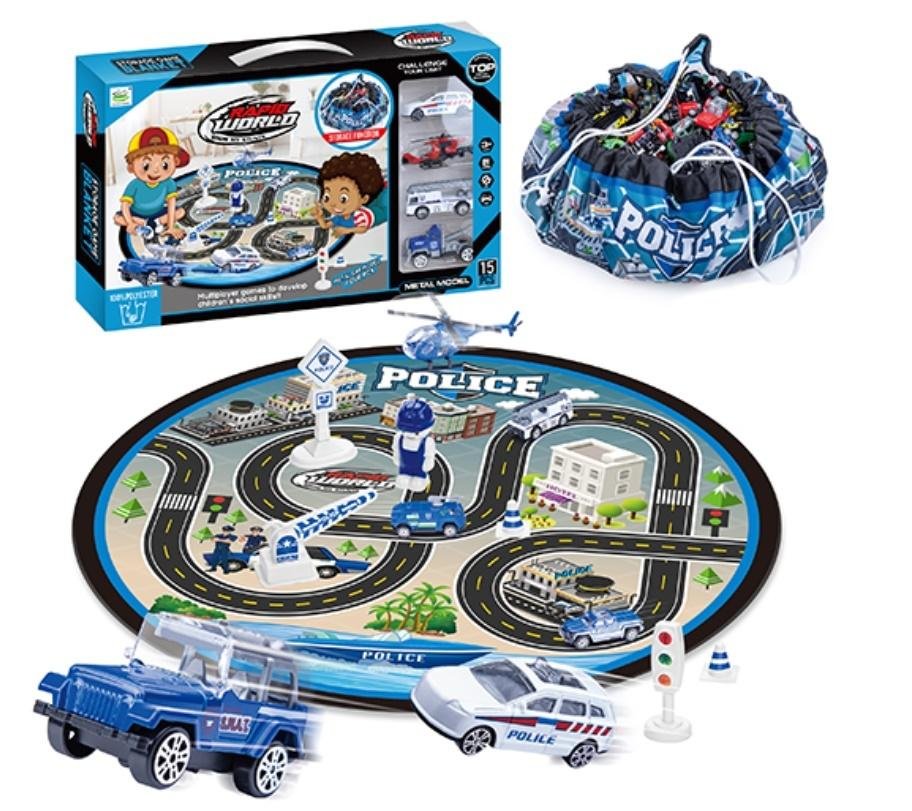 W ZESTAWIE:- MATA Z MAPĄ MIASTA - POLICJA 75 X 75 CM.- 4 POJAZDY- AKCESORIA DROGOWE- NAKLEJKIWYM. OPAKOWANIA: 41 X 25 X 4,5 CM.WIEK 3+ číst celé