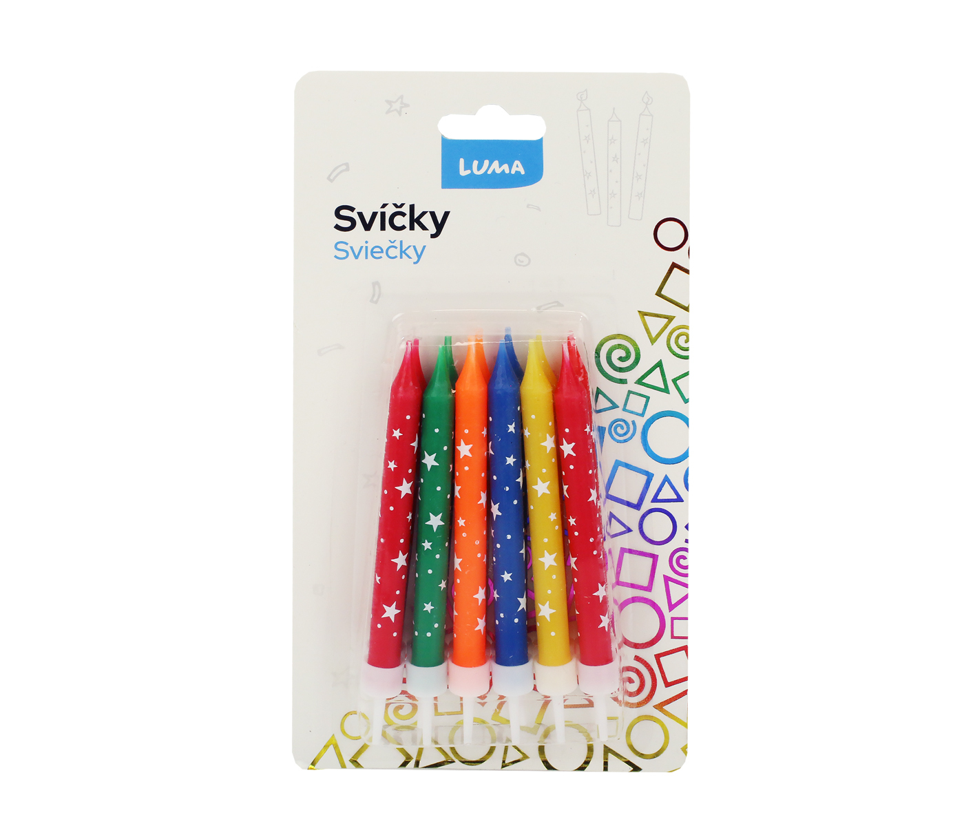 - Svíčky jsou barevné s potiskem hvězd