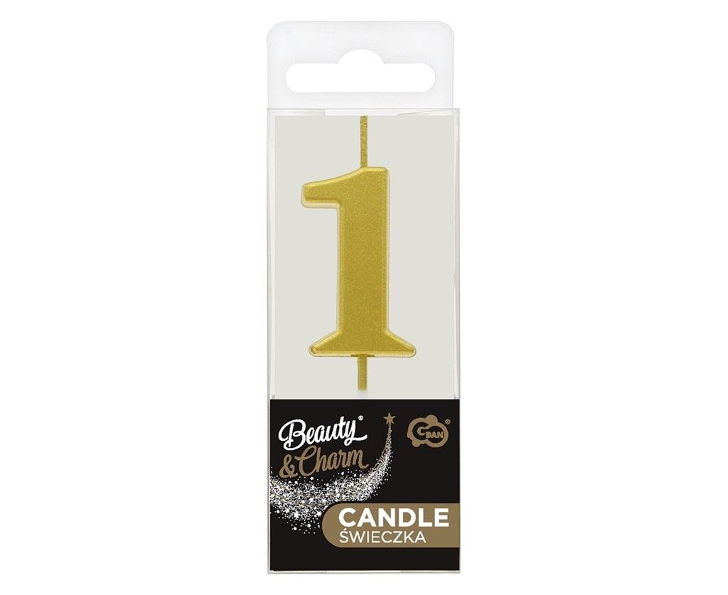 Świeczka piker B&C cyfra 1 metaliczna złota 9,5cm