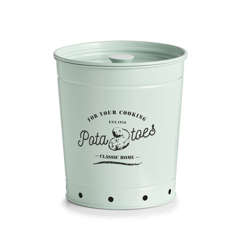 Retro kovová dóza ZELLER v mátově zelené barvě je ideálním řešením pro správné a hygienické skladování brambor. Díky větracím otvorům podporuje cirkulaci vzduchu a prodlužuje čerstvost uskladněné zeleniny. číst celé