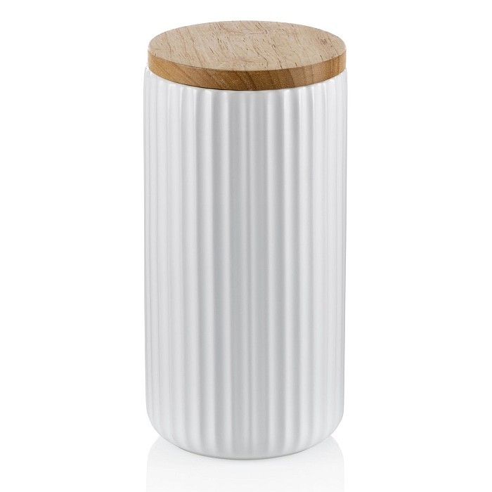 keramická dóza v matné bílé barvělíbivý žebrovaný design lahodí nejen oku, ale zároveň má svoji funkční podstatu, toto provedení je pevnější, odolnější vůči nárazům nebo poškrábánídřevěné víčko se silikonovým těsněnímjednoduché čištění, lze umývat v myčce nádobírozměry: 10,5 x 20,5 cmobjem 1... číst celé