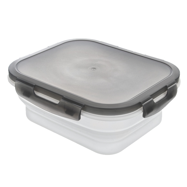 Hranatá skládací dóza s víčkem na pevné uzavírání pomocí 4 klipů. Transparentní s těsněním. Složená šetří místo ve skříňce, hodí se skvěle do karavanů, na kempování, na cesty. Vhodná do chladničky, MVT (bez víčka), vhodná do myčky na nádobí. Materiál: plast PP, silikon. Rozměry: objem 1 l,... číst celé