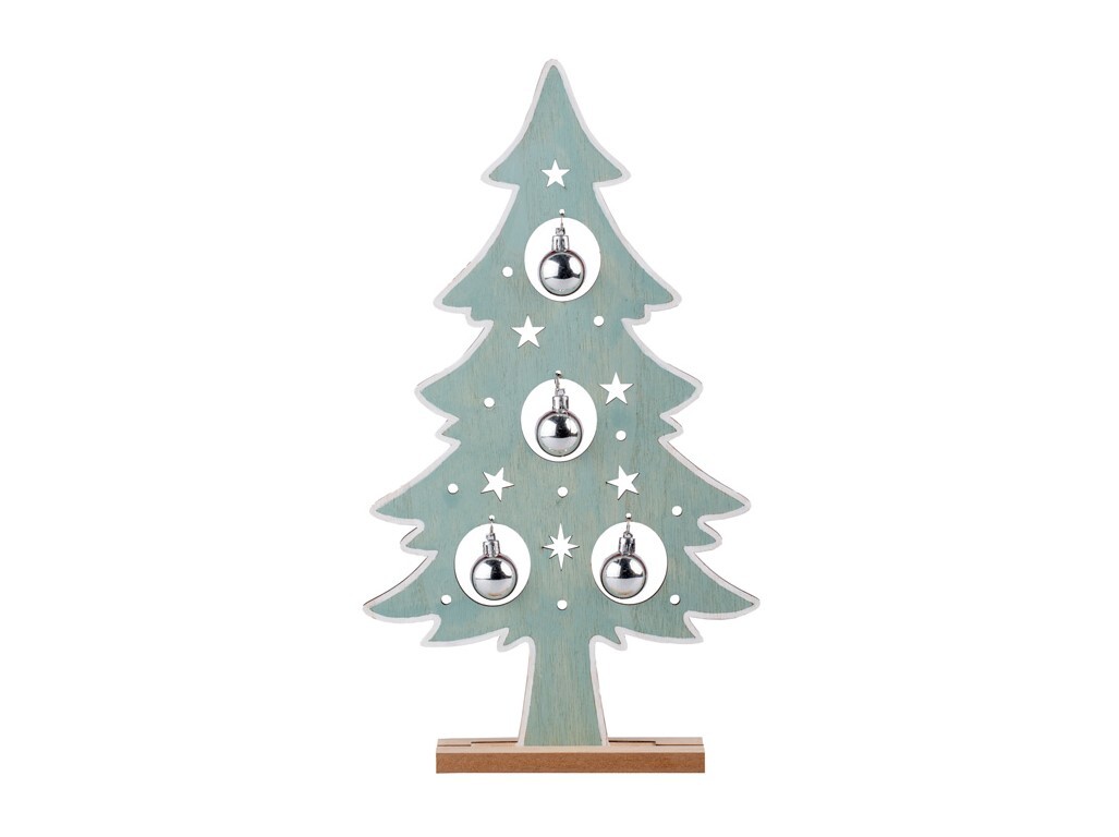 Dekorace dřevo 240x50x420mm,stromek na postavení s kouličkami, zelená, stříbrná