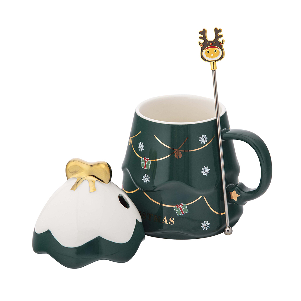 KUBEK CHOINKA ZIELONA NBC 500 ML Z POKRYWKĄ I MIESZADEŁKIEM COLOR BOX