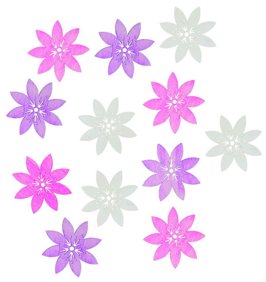 Dřevěné výseky 4cm - květy růžový mix 12ks