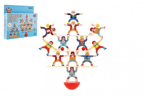 Hra balanční herkules mini dřevo 26ks 3 barvy v krabičce 21x19x3,5cm