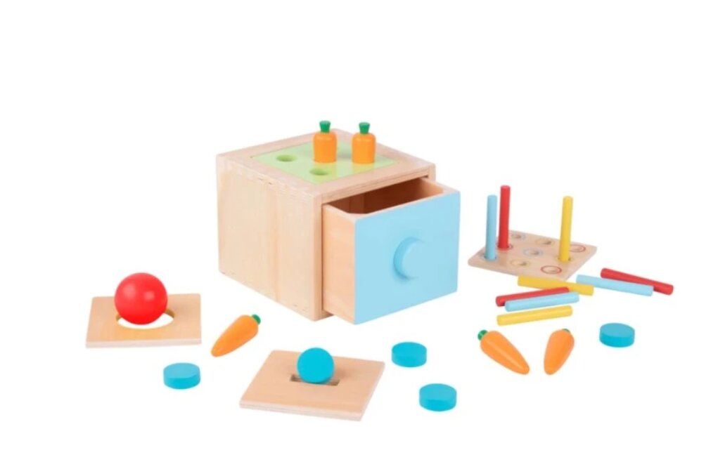 Montessori box Tooky Toy je multifunkční dřevěná hračka, která přirozeně roste s dítětem a nabízí čtyři různá vkládací cvičení pro různé věkové fáze. Skvěle podporuje jemnou motoriku, koordinaci, logické myšlení i zábavné učení formou hry. číst celé