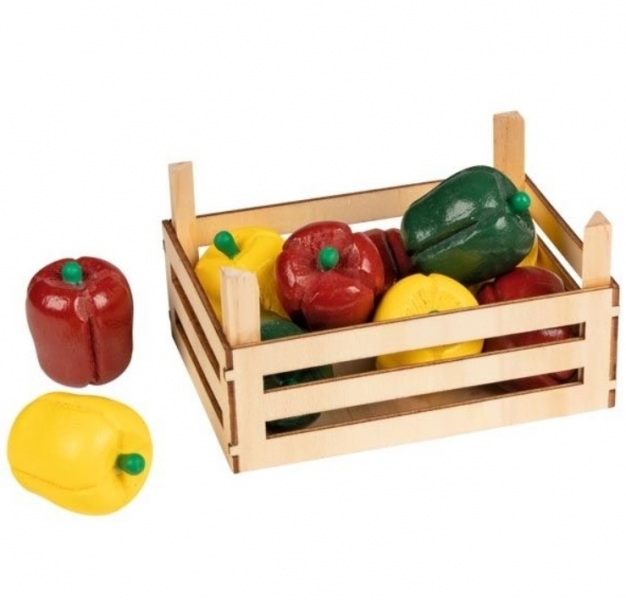 Tato realisticky vyrobená sada obsahuje 10 kusů paprik v živých barvách, které jsou uloženy v praktickém dřevěném košíku. Vaše děti tak mohou napodobovat nakupování v obchodě nebo přípravu zdravých jídel, což je nejen zábavné, ale také poučné.