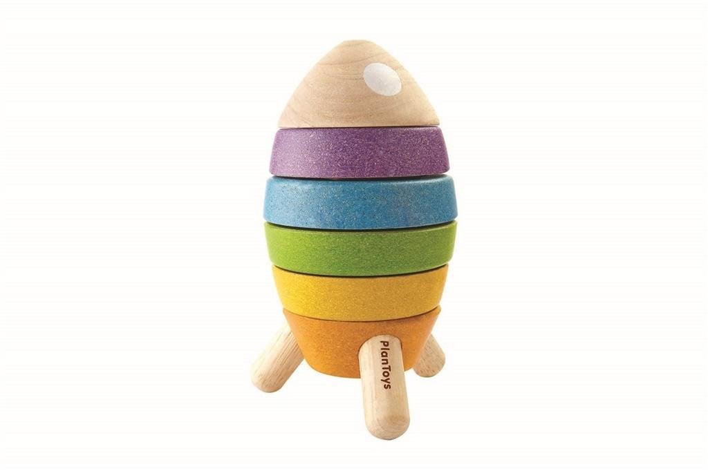 Wieża do układania to jedna z ulubionych zabawek najmłodszych. Pozwala nauczyć się rozróżniania wielkości, kształtów i kolorów, a nakładanie krążków jeden na drugi to doskonały trening dla motoryki małej, czyli sprawności dłoni i paluszków. Wieża do układania marki PlanToys w kształcie rakiety...