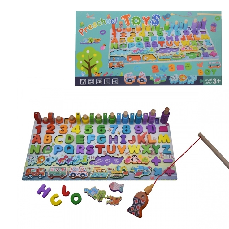 Zábavné učení se písmen a číslic. Když tě to přestane bavit, zahraj si buď chytáním rybek, hraním na xylofonu nebo vkládáním zvířátek do správných políček. Dřevěná hra pro rozvíjení logického myšlení, jemné motoriky a kreativity. Balení obsahuje - herní desku, xylofon, dvě udice, rybičky s...