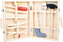 V tomto vysoce kvalitním dřevěném kufříku je 8 nástrojů o velikosti 16 až 25 cm. Kladivo, pila a hasák jsou zajištěny otáčejícími se kolíky. Ostatní nářadí se vkládá do vyklápějícíh se držáků, které lze odstranit odšroubováním velkých dřevěných vrutů. Dřevěné držadla jsou na lanech. Výborná sada...