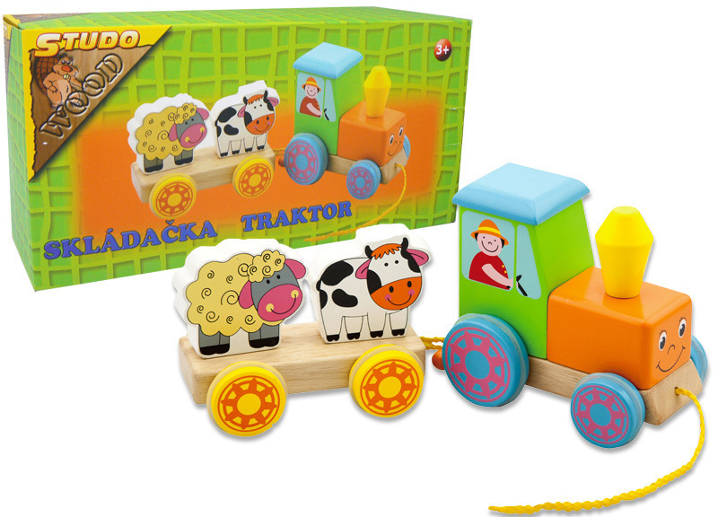Dřevěný skladací traktor s přívěsem a zvířátky. Vyrobeno z kvalitního dřeva. číst celé