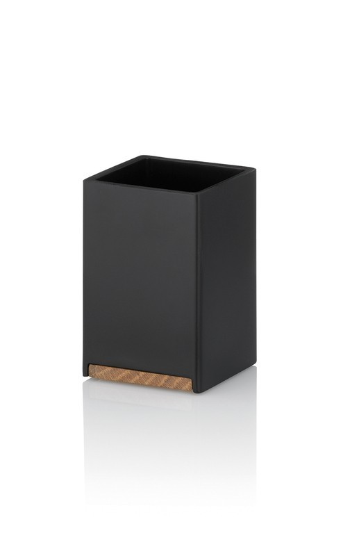 Černý kelímek na zubní kartáčky ze série Cube od kela. Díky hranatému základnímu tvaru a solidně vypadající optice v kombinaci s černou barvou získává hrnek osobitý vzhled. Rozměry: 7x7x11 cm Polyresin, matná černá, dubové dřevo 7x7cm, 11cm v číst celé