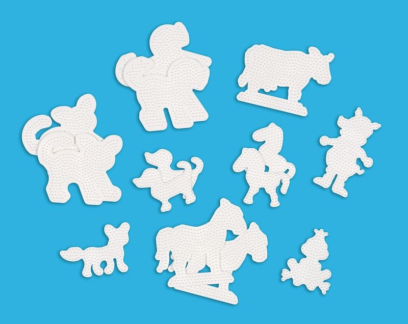Tématická sada podložek vhodná především pro skupinu dětí na poznávání zvířat, ale i k procvičení fantazie, zručnosti,trpělivosti, rozeznávání tvarů a barev, motoriky atd.Po zažehlení si děti mohou hrát se zvířátky divadlo, vymíšlet příběhy apod.Obsahuje: 15 podložek. Podložka č. H280 kráva , č....