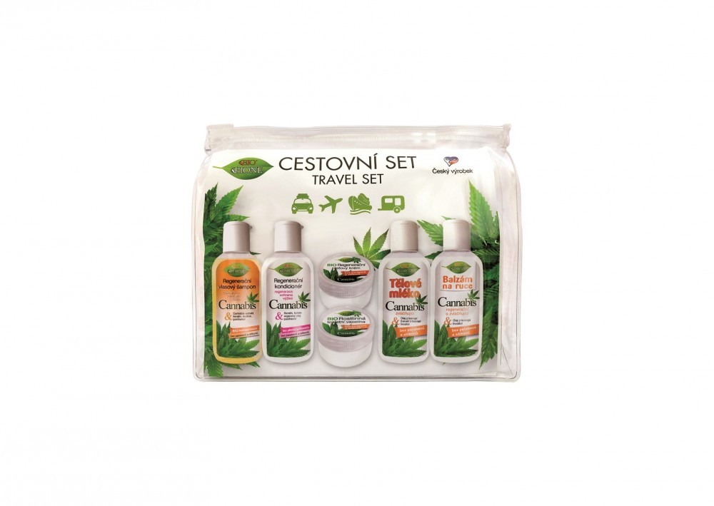 Cestovní sada Bione Cosmetics obsahuje vše, co můžete při cestování potřebovat. Najdete v ní celkem šest produktů. Sada produktů BIO Cannabis obsahuje regenerační vlasový šampon, regenerační kondicionér, tělové mléko, balzám na ruce, zvláčňující a regenerační pleťový krém a rostlinnou toaletní...
