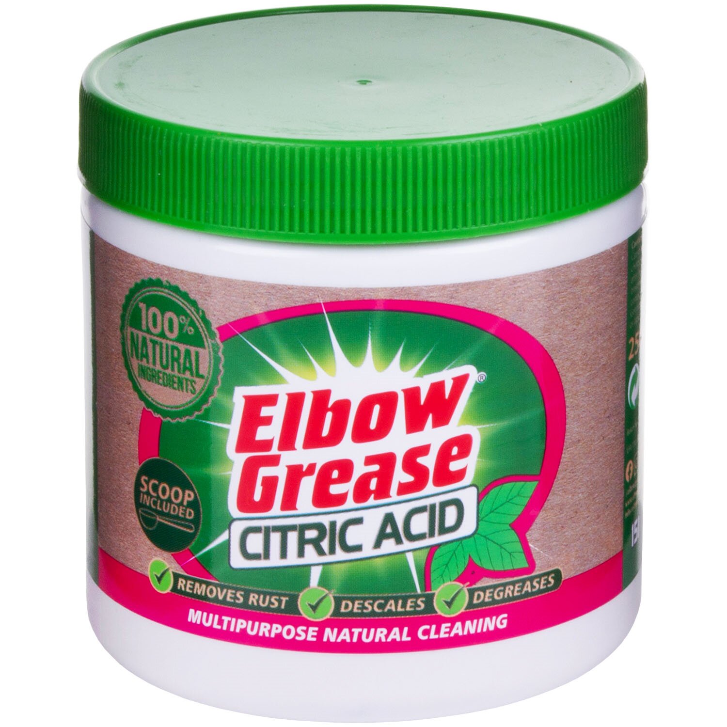 Elbow Grease všestranný přírodní čistič - 100% kyselina citronová - 250gElbow Grease Citric Acid je vysoce všestranný odstraňovač vodního kamene, odmašťovač a odstraňovač rzi, vyrobený ze 100% přírodních ingrediencí, který je ideální pro všestranný úklid v celé domácnosti. Pravidelné používání...