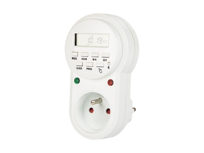 Zásuvka s elektronickým časovačem umožňuje naplánovat zapnutí a vypnutí. Minimální nastavený čas je 1 minuta, je možné 24hodinové a týdenní programování.