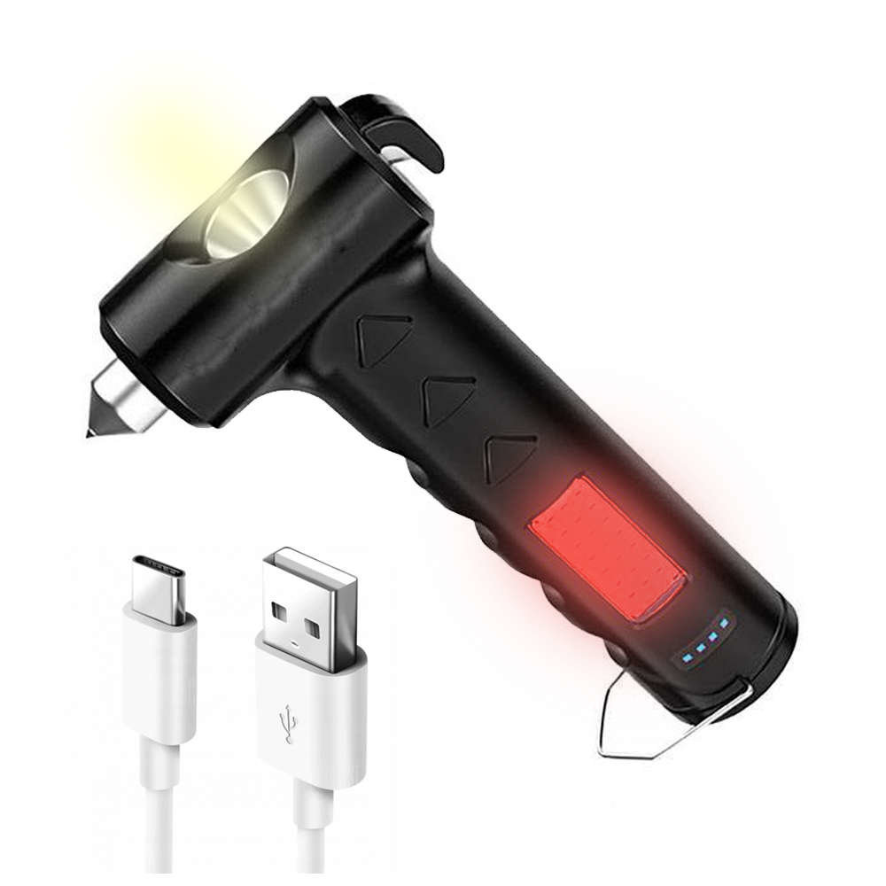 Bezpečnostní svítilna SOS COB LED nouzová svítilna s řezacím nožem a čepelí 1200 mA do auta