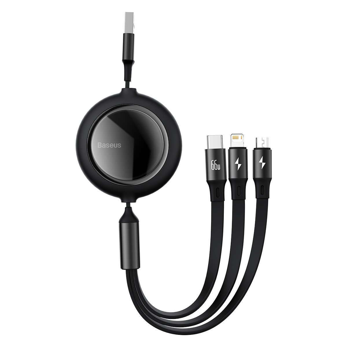 Kabel USB 3w1 Baseus Bright Mirror, USB do micro USB / USB-C / Lightning, 66W, 1,2 m (czarny)