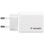 Verbatim GaN cestovní adaptér Essentials 65W, 2×USB-C PD, 1×USB-A QC, EU konektor, bílá