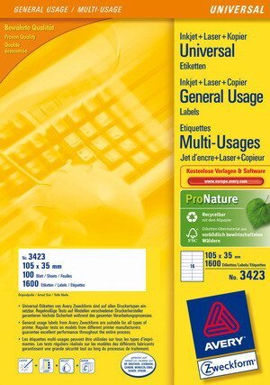 Etykiety 105 x 35 mm 16 x 100 ark. A4, Avery