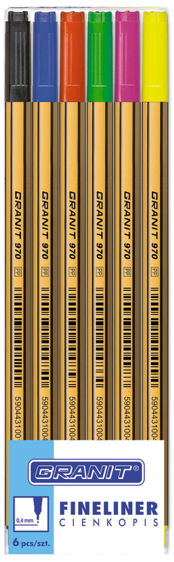 Cienkopisy 0.4 mm C970 6-kol. w etui, Granit