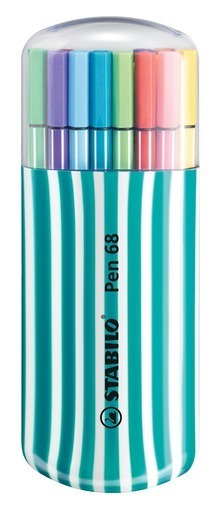 Fixy "Pen 68 Zebrui", 20 různých barev, sada, 1 mm, tyrkysové pouzdro, STABILO
