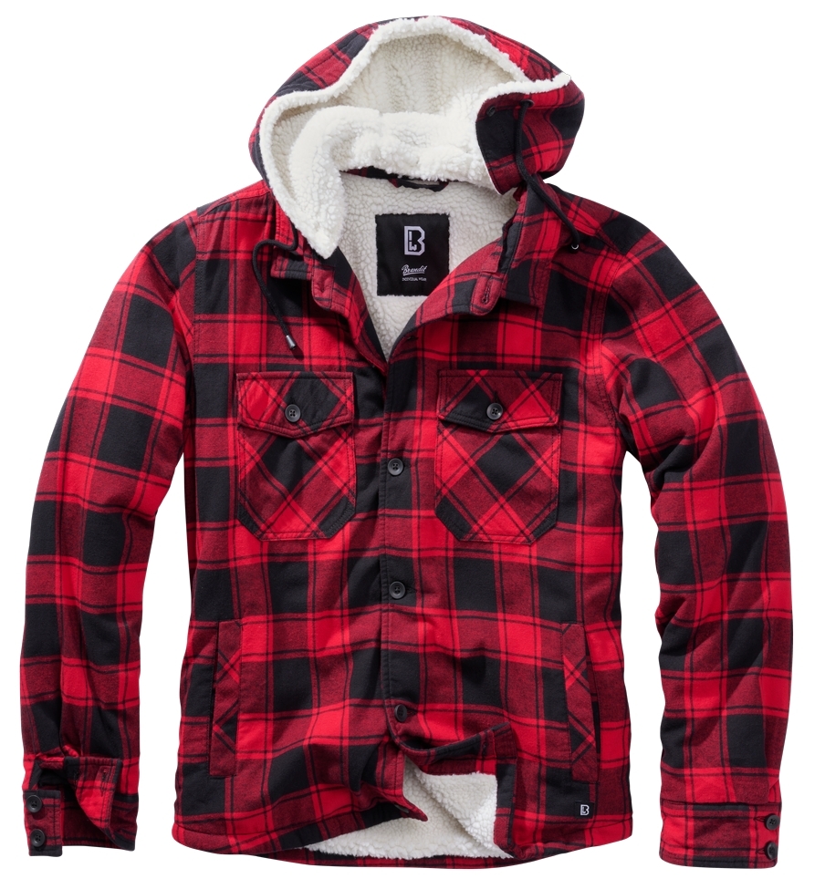 Bunda Brandit Lumberjacket Hooded - červená-černá, M
