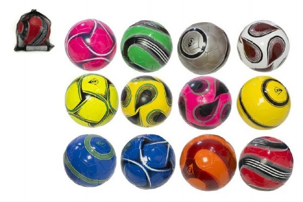 Míč fotbalový s pumpičkou 22cm Dunlop vel. 5 šitý mix barev v síťce (1 kus)