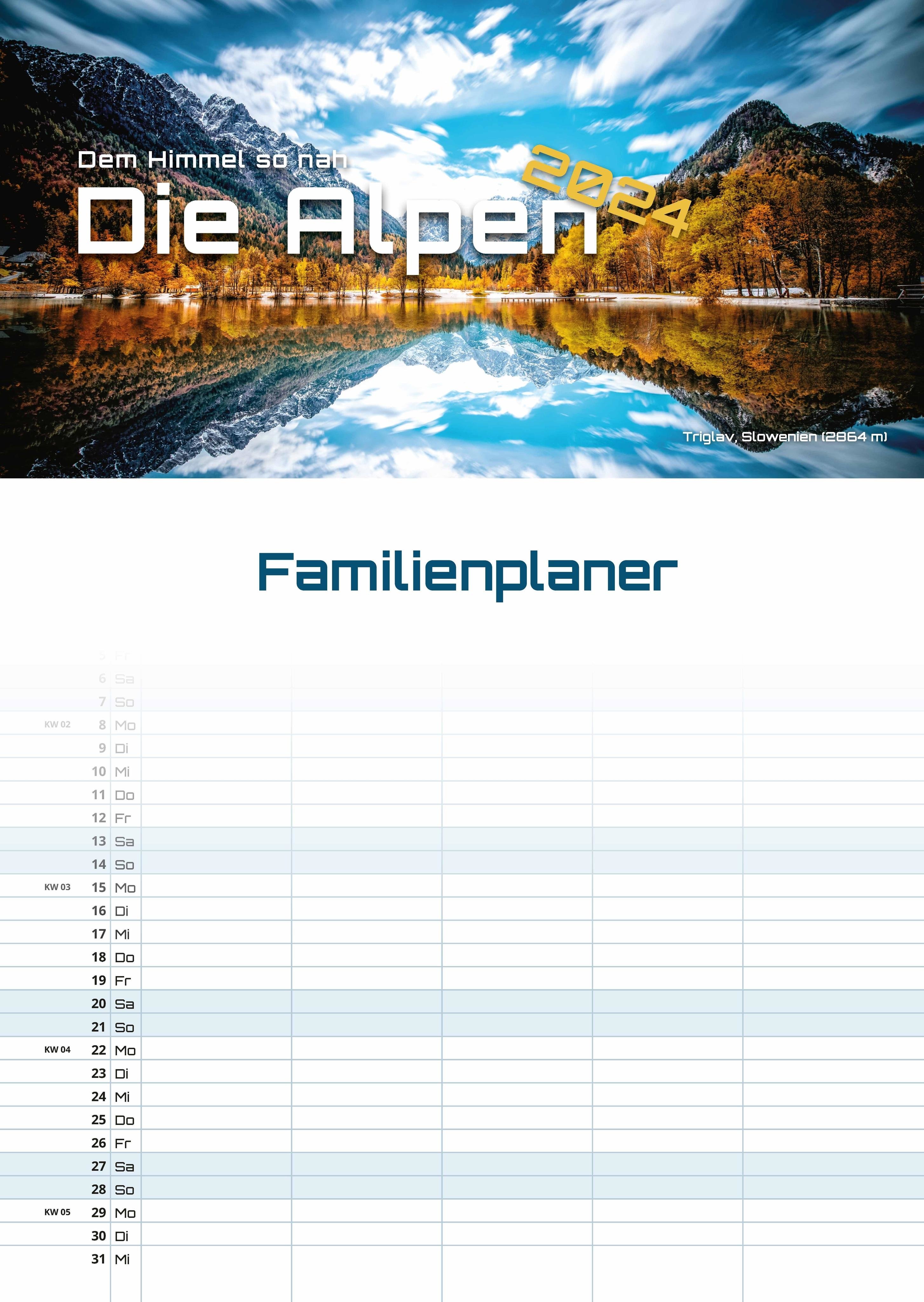 Die Alpen - dem Himmel so nah - 2024 - Kalender DIN A3 (Familien-/Terminplaner) (německy)