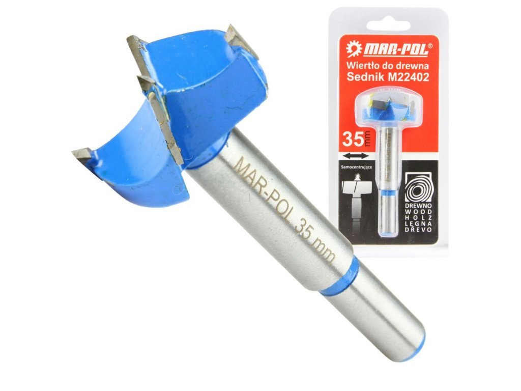 Fréza čelní, sukovník do dřeva 35mm MAR-POLSukovník je ideální nástroj pro výrobu otvorů pro panty při výrobě nábytku, pro spodní kování v systémech posuvných dveří, klik, zámků, baterií atd. Středový hrot zajišťuje přesné umístění vrtáku, hrany břitů zajišťují přesné vrtání otvorů bez...