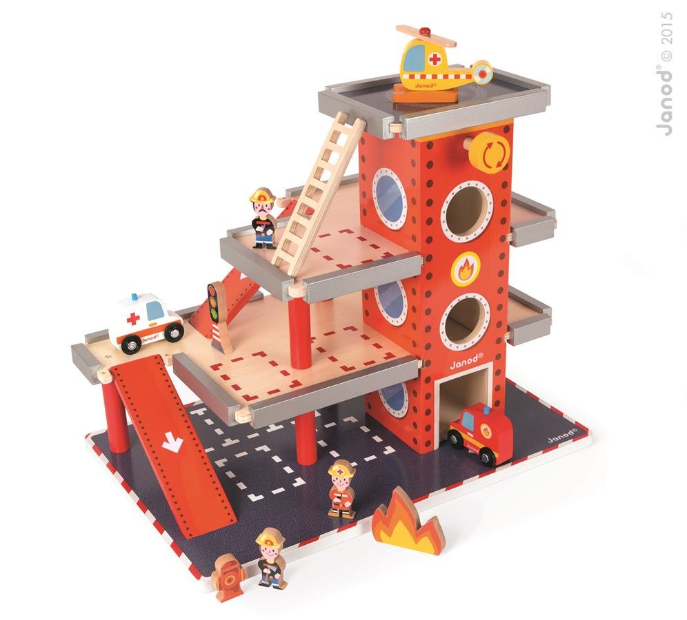 Nádherná požární stanice a garáž Story Janod je hračka jako stvořená pro Vašich malých hasičov.Poskladaj, zaparkuj, přistaň s vrtulníkem a buď připraven na poplach! S touto krásnou dřevěnou požární stanicí si děti užijí hodiny zábavy. Stanice má tři patra, které jsou navzájem propojeny rampami....