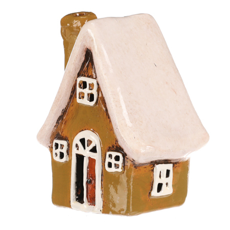 Keramický domek se stěnami v zelené barvě, bílými okny a bílou střechou je stylová dekorace na postavení, která se hodí pro podzimní i zimní výzdobu. Skvěle doplní sezónní aranžmá a vnese do interiéru příjemnější a veselejší atmosféru. číst celé