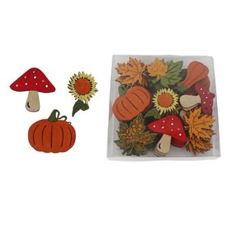 Sada podzimních přízdob v krabičce.Sada obsahuje 72 přízdob.Přízdoby mají rozměry : 2,5 - 4 x 0,3 cm, výšku 3 - 4 cm. číst celé
