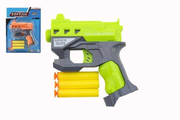 Pistole na pěnové náboje s přísavkami + náboje 3ks plast 12x14cm 2 barvy na kartě