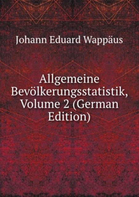 This book, Allgemeine Bevolkerungsstatistik. Volume 2, by Johann Eduard Wappaus, is a replication of a book originally published before 1861. It has been restored by human beings, page by page, so that you may enjoy it in a form as close to the original as possible. This book was created using...