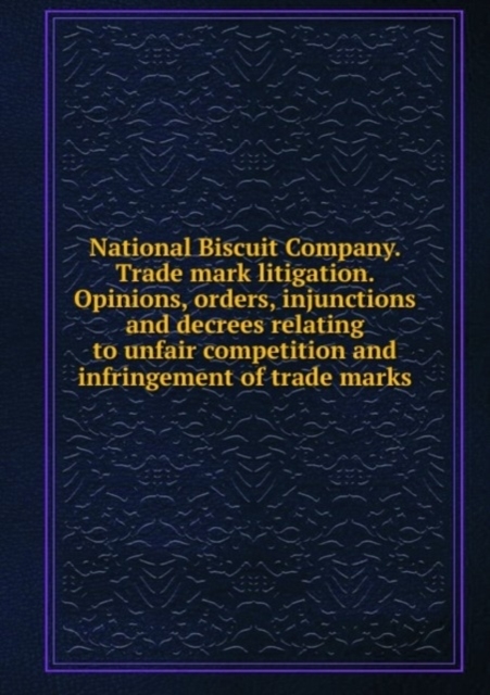 Opinions, orders, injunctions and decrees of United States Courts relating to unfair competition and infringement of trade marks. Third edition This book, National Biscuit Company. Trade mark litigation. Opinions, orders, injunctions and decrees of United States Courts relating to unfair...
