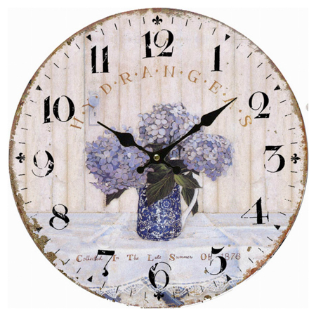 Hodiny nástěnné - hortenzie, MDF, 34 cm