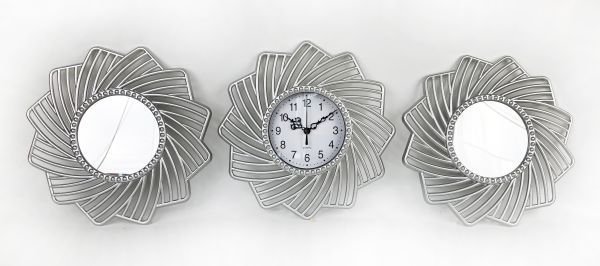 Plastový nástěnný set - hodiny a zrcadla Ø25cm - sada 3ks, 1/20