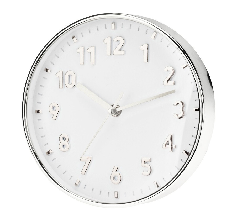 nástěnné hodiny se stříbrným rámembílý ciferník se stříbrnými číslicemisnadno čitelné díky velkým lesklým číslicímmateriál: PP plastuniverzální, určené do jakékoliv místnosti, kuchyně, pokoje, chodby, kanceláře, školy, atd.napájení 1 x AA baterie (není součástí hodin)rozměry: 20 x 3,8 cmbarva:... číst celé