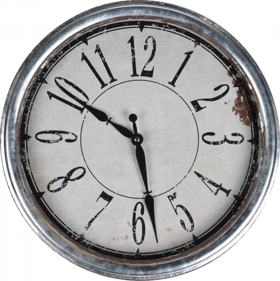Nástěnné kovové hodiny ve vintage stylu. Napájení na 1x AA baterii (není součástí výrobku).Materiál: kov, skloRozměry:průměr 32 cmšířka 6 cm číst celé