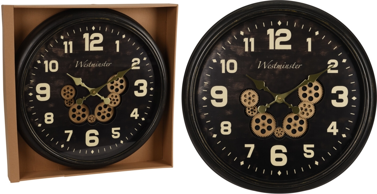 Industriální hodiny s otevřeným strojkem 57 cm, černé