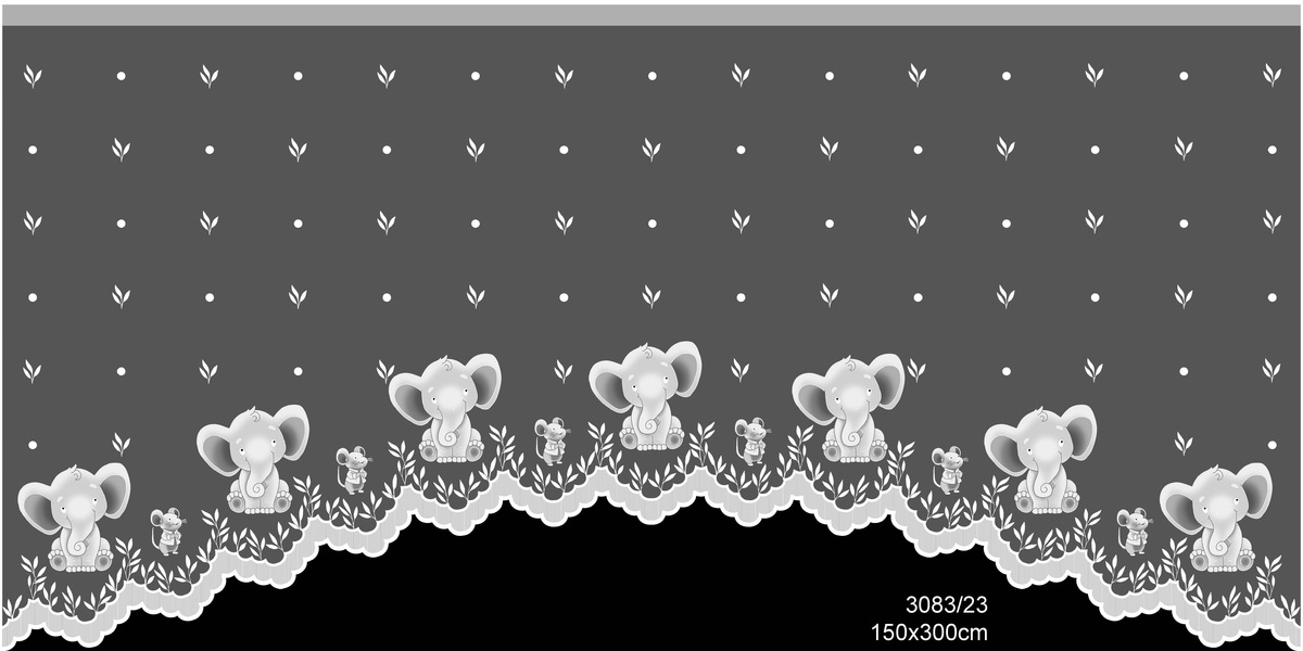 Hotová záclona, Slůňata, bílá 300 x 150 cm