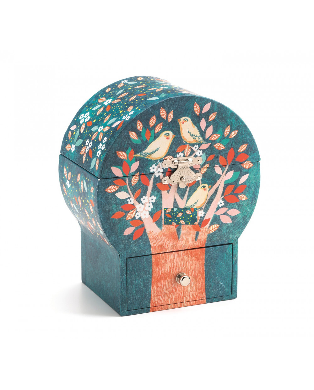 Tato zavírací hrací skříňka je nejen krásným doplňkem dětského pokoje, ale také zdrojem radosti a uklidňující melodie díky točícímu se ptáčkovi uvnitř. Po otevření se spustí příjemná melodie, která dokáže potěšit děti i dospělé. Skříňka zároveň slouží jako praktické úložiště pro dětské poklady, a tak podporuje pořádek a zároveň představivost.