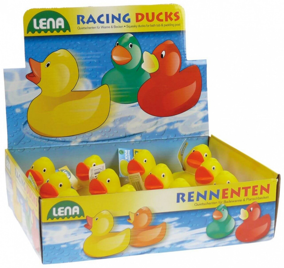 Kaczka do kąpieli LENA. Gdy tylko kaczka zostanie ściśnięta, wyda piskliwy dźwięk. Wysokość kaczek: 8 cm. Odpowiednia dla najmłodszych od 12 miesięcy. Zapakowana w ekspozytor sprzedażowy. Każdy produkt z załączonymi informacjami o produkcie. číst celé