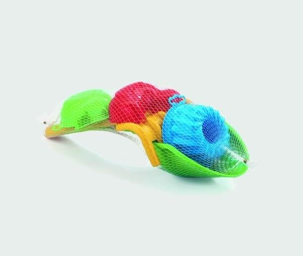 Zawiera łopatkę, grabki i trzy foremki. Całość spakowana jest w siatkę. Wymiary ok. 26 cm x 11 cm x 7,5 cmZabawka nieodpowiednia dla dzieci poniżej 24 miesięcy. Zawiera małe elementy, łatwe do połknięcia. Ten produkt spełnia europejskie standardy. Usuń elementy opakowania przed podaniem zabawki...